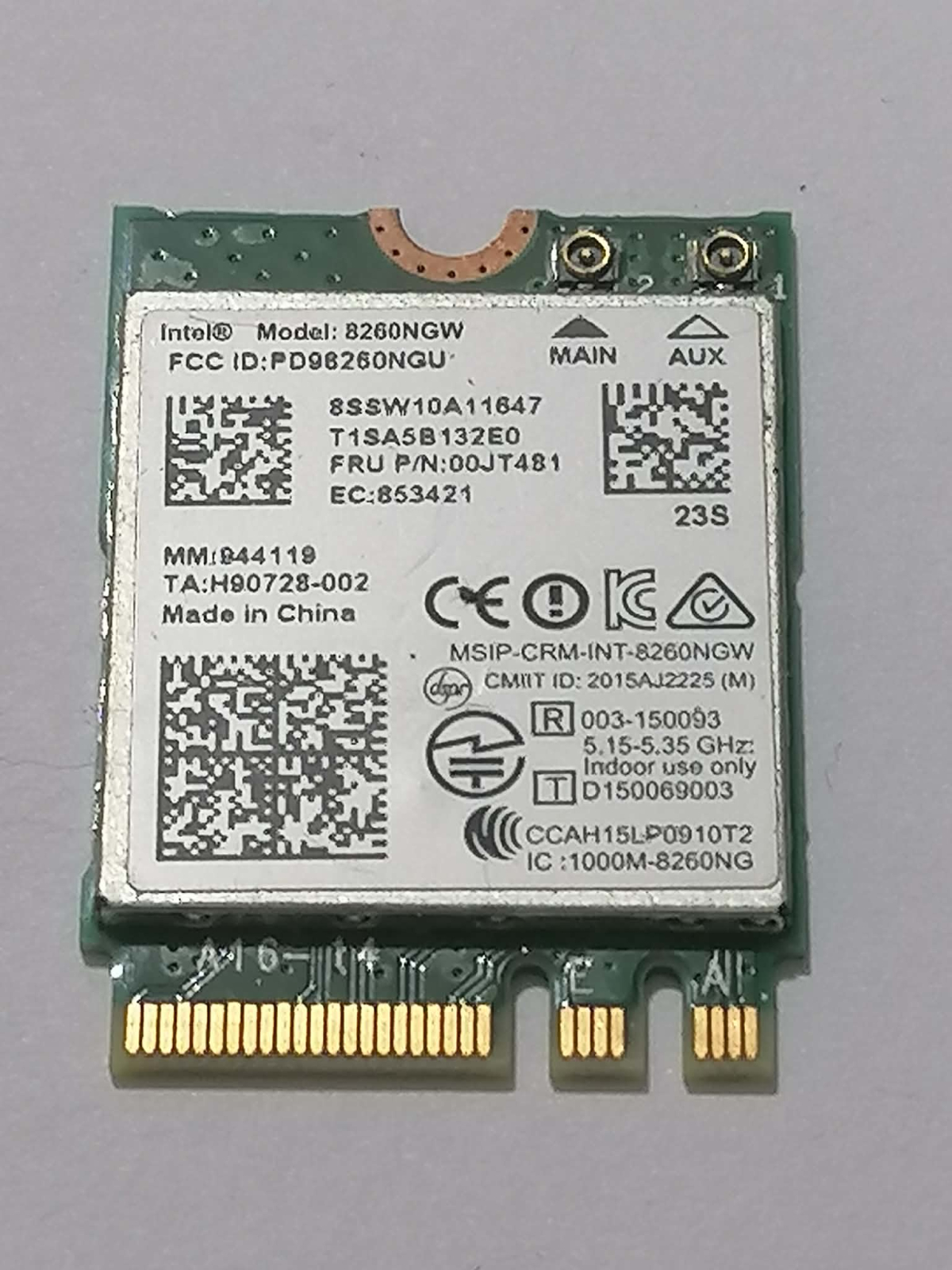 • Intel: 8260NGW, 3160NGW ( AC 3160 ), 3168NGW, 7265NGW, 3165NGW,
